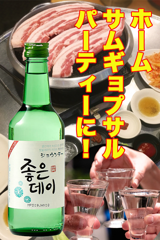 サムギョプサル、キムチチゲ、お刺身にも合う、韓国焼酎ジョウンデーを、この機会にさらにお得にお買い求めいただけます。
